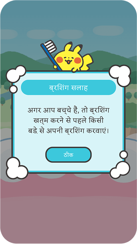 इस चुनौती की पूर्ति में, और टूथब्रश करने को बढिया व मजेदार ढंग से प्रमोट करने हेतु, Pokémon Smile का उपयोग महत्वपूर्ण खोज है।